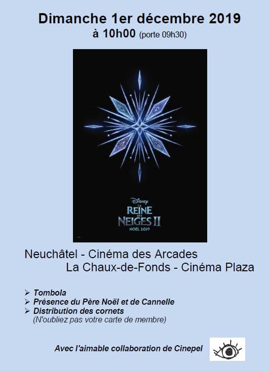 Comme chaque année, La Paternelle organise sa traditionnelle fête de Noël (dimanche 1er décembre) à l’intention de ses membres. Cette année près de 500 personnes découvriront le nouveau film de Walt Disney ” La Reine des Neiges II”. Au terme de la projection les enfants auront le plaisir de rencontrer notre mascotte Cannelle accompagnée du …….. père Noël. Pour ne pas faillir à une autre tradition de La Paternelle, les enfants recevront le fameux cornet de la Paternelle avec une belle surprise.