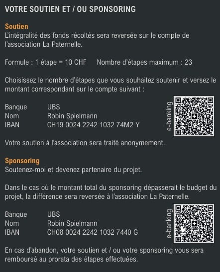 Financez une ou des étapes au profit de La Paternelle ou en soutien à son aventure.